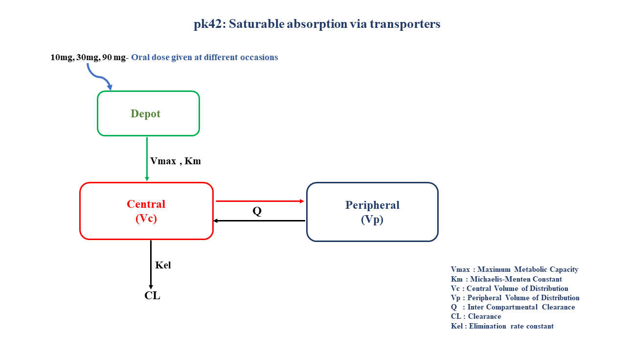- Structural model - Multi compartment model with saturable absorption kinetics