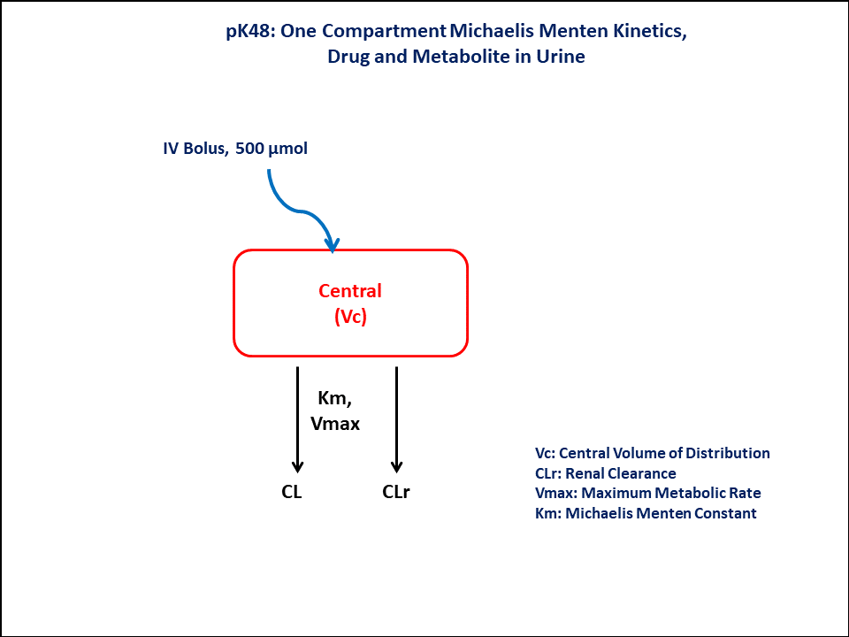 PK48 - One-compartment Michaelis-Menten kinetics - Drug and metabolite in urine